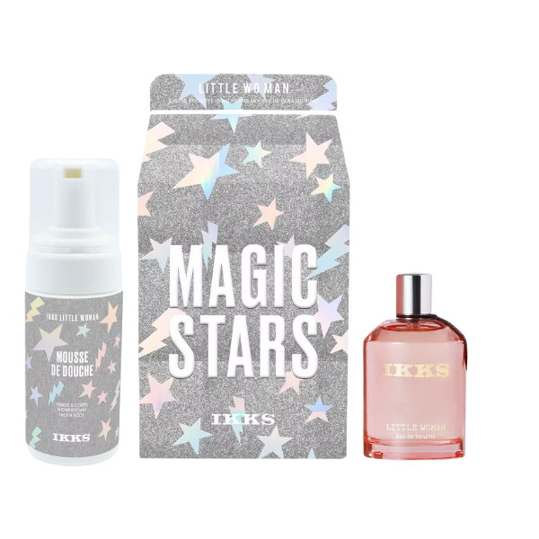 Little Woman d’IKKS est une eau de toilette florale fruitée, lancée en 2000. Elle s’ouvre sur des notes fraîches de lavande, bergamote et cardamome, évoluant vers un cœur floral de muguet, violette et pêche, pour se fondre dans un fond chaleureux de fève tonka, jasmin et ambre.