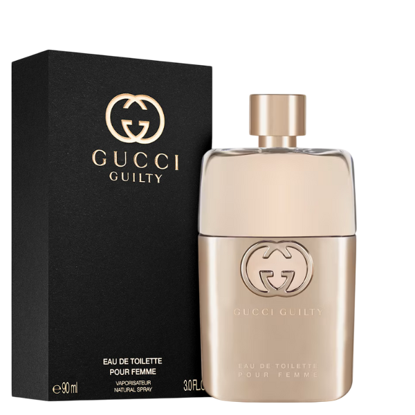 Reconnaissable par son accord floral ambré unique, l’Eau de Toilette Gucci Guilty pour Femme incarne une féminité légère et rafraîchissante. Elle mêle la douceur des pétales de lilas à un accord pétillant d’agrumes, tout en laissant un sillage enveloppant de notes d’ambre et de patchouli. L’ouverture lumineuse et vibrante de la Mandarine se mêle au Poivre Rose, apportant une fraîcheur éclatante. Au cœur, la délicatesse du Lilas se combine à une harmonie fruitée de Pêche, de Framboise et de Géranium d’Egypte, offrant un contraste raffiné et équilibré. Enfin, les notes de Patchouli et d’Ambre apportent chaleur et sensualité à ce parfum, créant un sillage à la fois intense et envoûtant, qui fait écho à l’Eau de Parfum de Gucci Guilty.