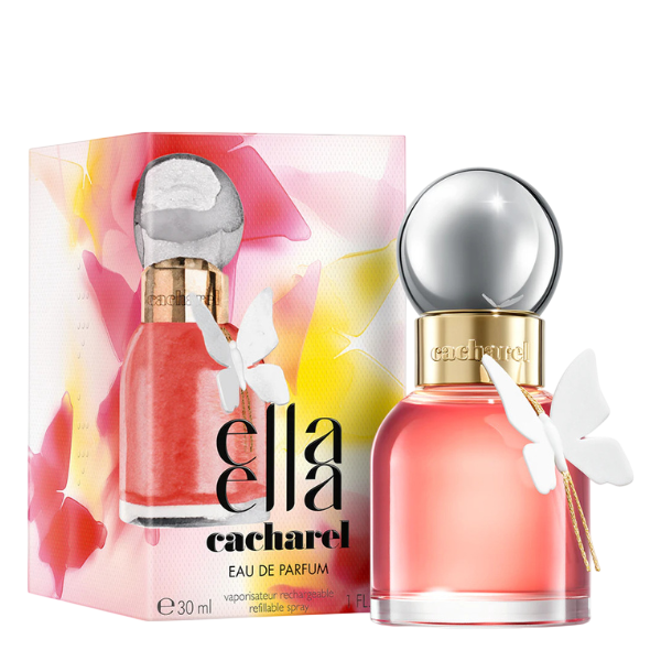 Ella Ella Eau de Parfum de Cacharel, lancé en 2025, est une fragrance florale fruitée gourmande et rechargeable, célébrant la féminité libre et solaire. Créée par le parfumeur Dominique Ropion, elle s’ouvre sur une fraîcheur exotique de bergamote et d’accord coco, suivie d’un cœur floral éclatant d’absolu de fleur d’oranger et de jasmin sambac. La base, mêlant infusion de vanille bourbon durable de Madagascar et patchouli, offre un sillage chaud et réconfortant. Conçu pour les femmes modernes et audacieuses, son flacon rose orné d’un papillon symbolise la métamorphose et l’élégance. Idéal pour toutes les occasions, ce parfum incarne la joie et l’émancipation.