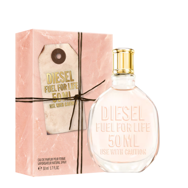Diesel est revenu sur la scène des parfums avec Fuel for Life, un duo de parfums à l’image de ses collections de prêt-à-porter : sexy, audacieux et racés. Fuel for Life pour Elle dévoile un jus chypré sensuel, caractérisé par une overdose de cassis. L’ouverture fruitée et verte intense de cassis évolue vers un cœur floral de jasmin, intensifié par l’indole, une note florale animale naturellement présente dans le jasmin. Le fond boisé de patchouli révèle une structure chyprée légèrement ambrée.