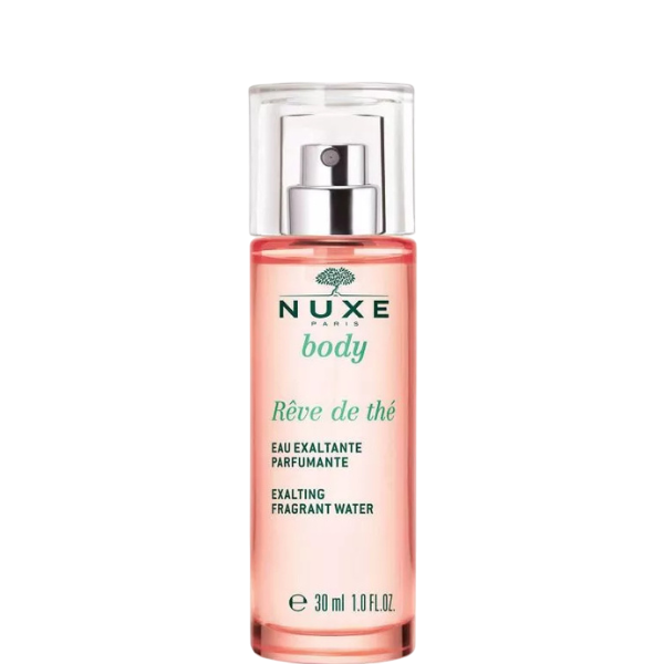 Brume parfumée vivifiante aux notes de rhubarbe, thé vert et herbes fraîches, procurant une sensation de fraîcheur et de bien-être.