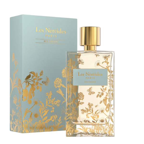 Rue Paradis est une eau de parfum florale et poudrée, inspirée d’un matin d’été dans le sud de la France, où le chant des cigales annonce une journée ensoleillée, avec des notes de tête d’anis étoilé, un cœur de mimosa et une base de bois de santal, rendant hommage à la boutique Les Néréides située au 12 rue Paradis à Nice.