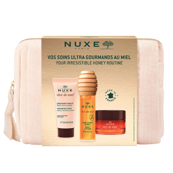 La Trousse Soins Ultra Gourmands au Miel de NUXE est un coffret élégant et délicieusement parfumé, conçu pour offrir une routine de soins complète à base de miel, idéal pour nourrir et apaiser la peau. Ce kit contient une sélection de produits essentiels enrichis en miel et autres ingrédients naturels, parfaits pour les peaux sèches et sensibles. Les soins inclus offrent une hydratation intense et un confort immédiat, laissant la peau douce, réparée et subtilement parfumée. Présenté dans une trousse pratique et raffinée, ce coffret est une invitation à un moment cocooning et de bien-être, parfait pour soi ou à offrir en cadeau.