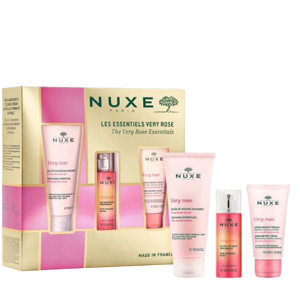 Découvrez toute la délicatesse de la rose dans le coffret Nuxe Very Rose qui rassemble ses essentiels : Very Rose Gelée de douche apaisante 100ml -Very Rose Eau Voluptueuse Parfumante 30ml -Very Rose Crème Mains et Ongles 50ml Soins formulés et fabriqués en France. Coffret 100% carton, 0% plastique et fabriqué en France.
