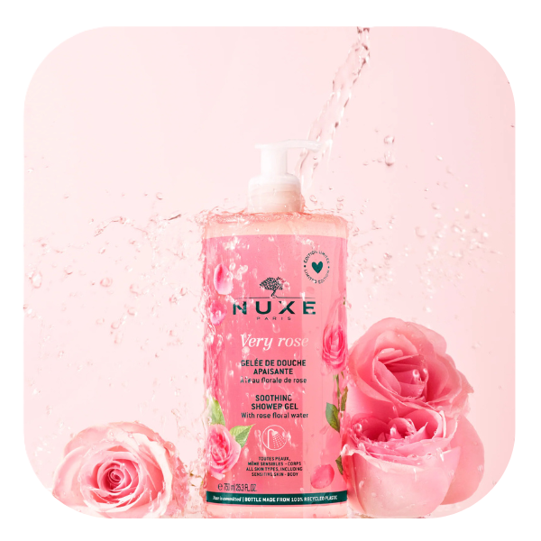 Fragrance délicate de rose, offrant un moment apaisant sous la douche.